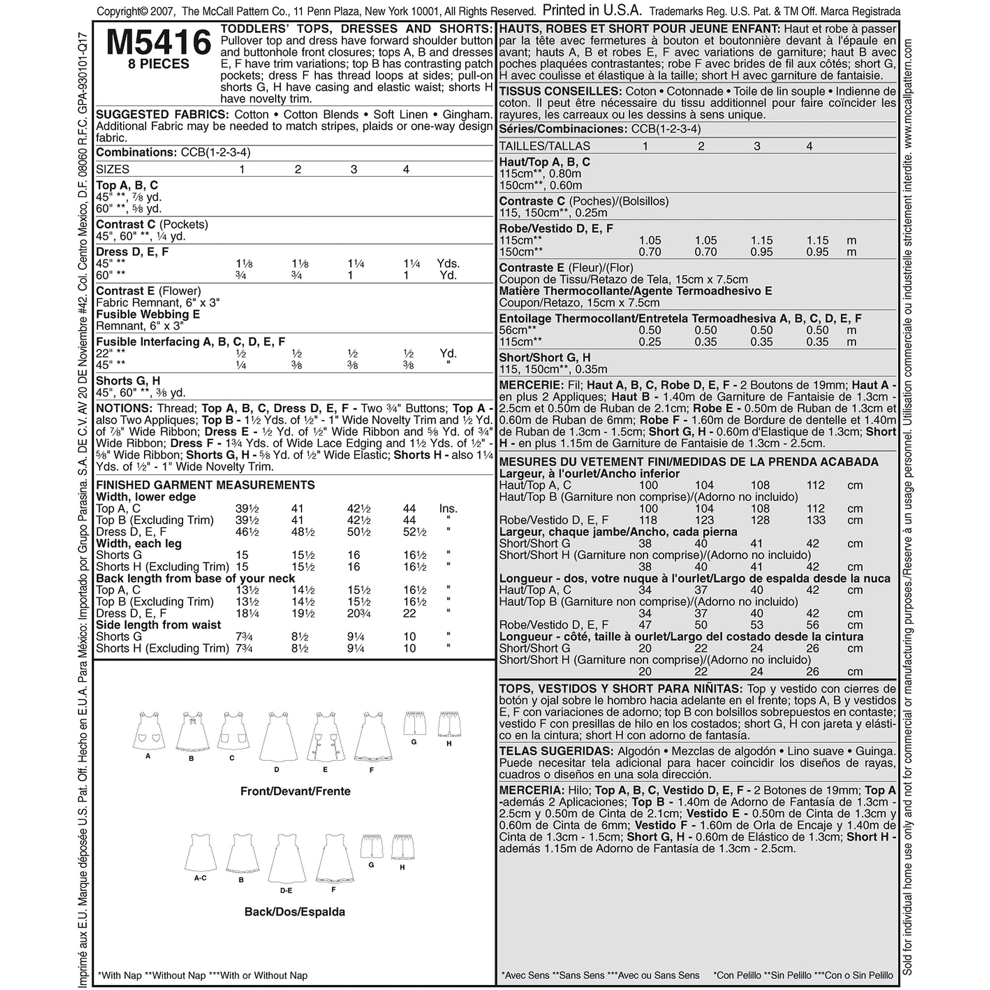 Mccall S Pattern Toddlers Tops Dresses And Shorts All Sizes In 1 Envelope Walmart Com